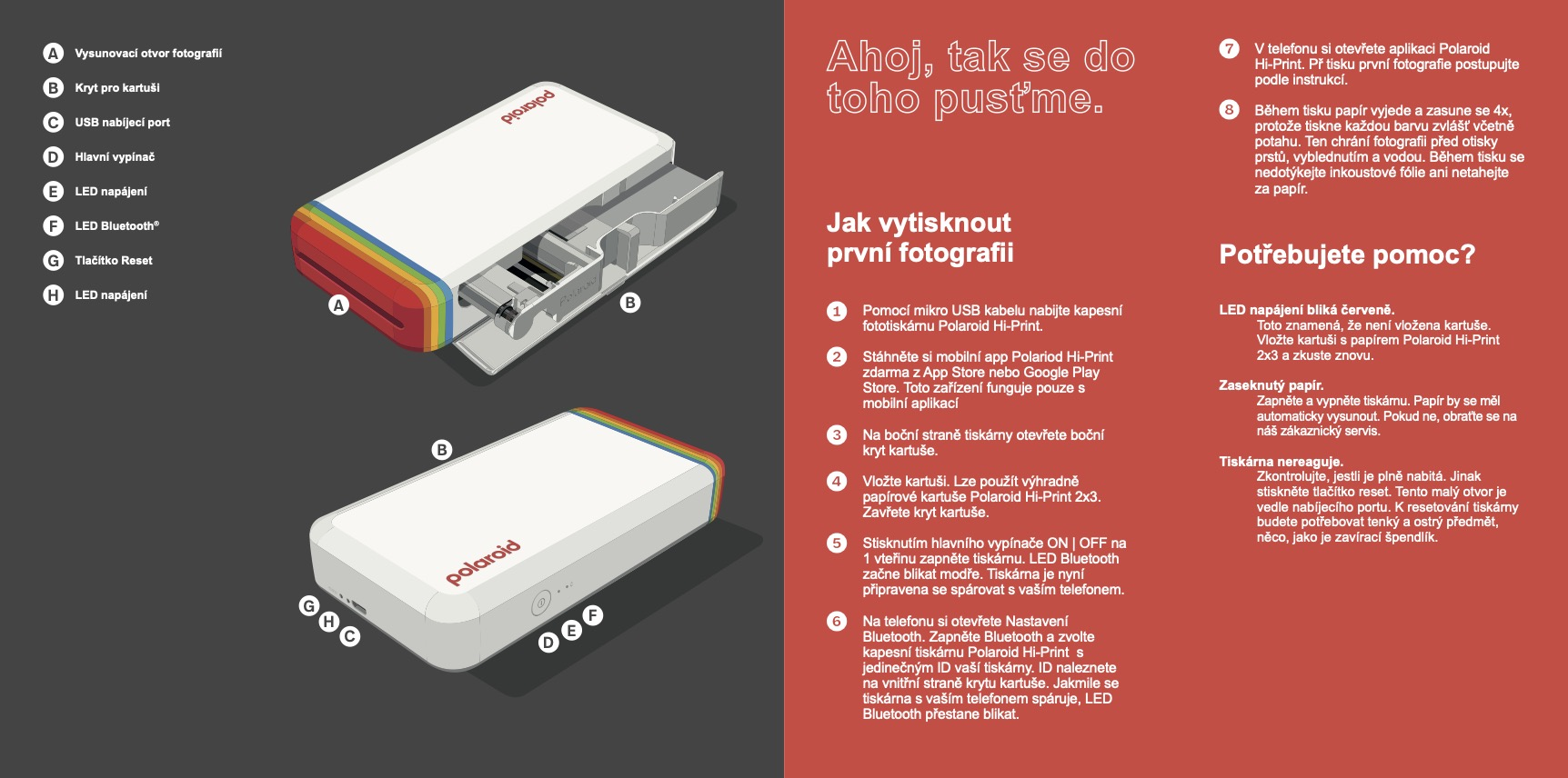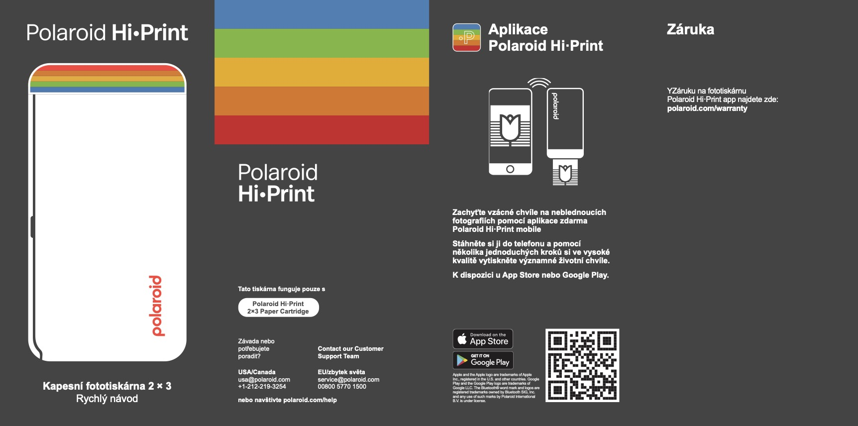 Návod k používání Polaroidu Hi-Print 10x15 cm je ke stažení v češtině zde.